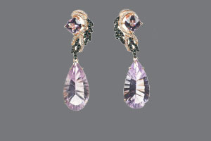 E74Gold K18-16,90g-Diamonds 0,46Black Diamonds 0.93ct-Amethyst 36,98ct